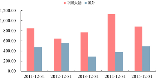圖3:中材節(jié)能近五年國內(nèi)外營收情況(單位:百萬元)