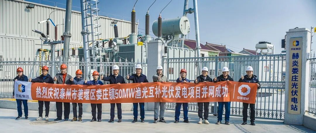 On February 13th, the 50 MW fishery-PV hybrid power generation project in Louzhuang Town, Jiangyan District, Taizhou City—invested by Taizhou Heyan Energy Technology Co., Ltd. and undertaken as an EPC turnkey project by Wuhan Building Material Industry Design & Research Institute Co., Ltd. of Sinoma Energy Conservation Limited—successfully achieved full-capacity grid connection. With the grid connection command issued from the 220 kV Shenxing Substation, the “blue ocean” formed by 92,326 high-efficiency PV modules began transmitting green power, marking the completion of this compound renewable energy base spanning six administrative villages and covering hundreds of hectares.